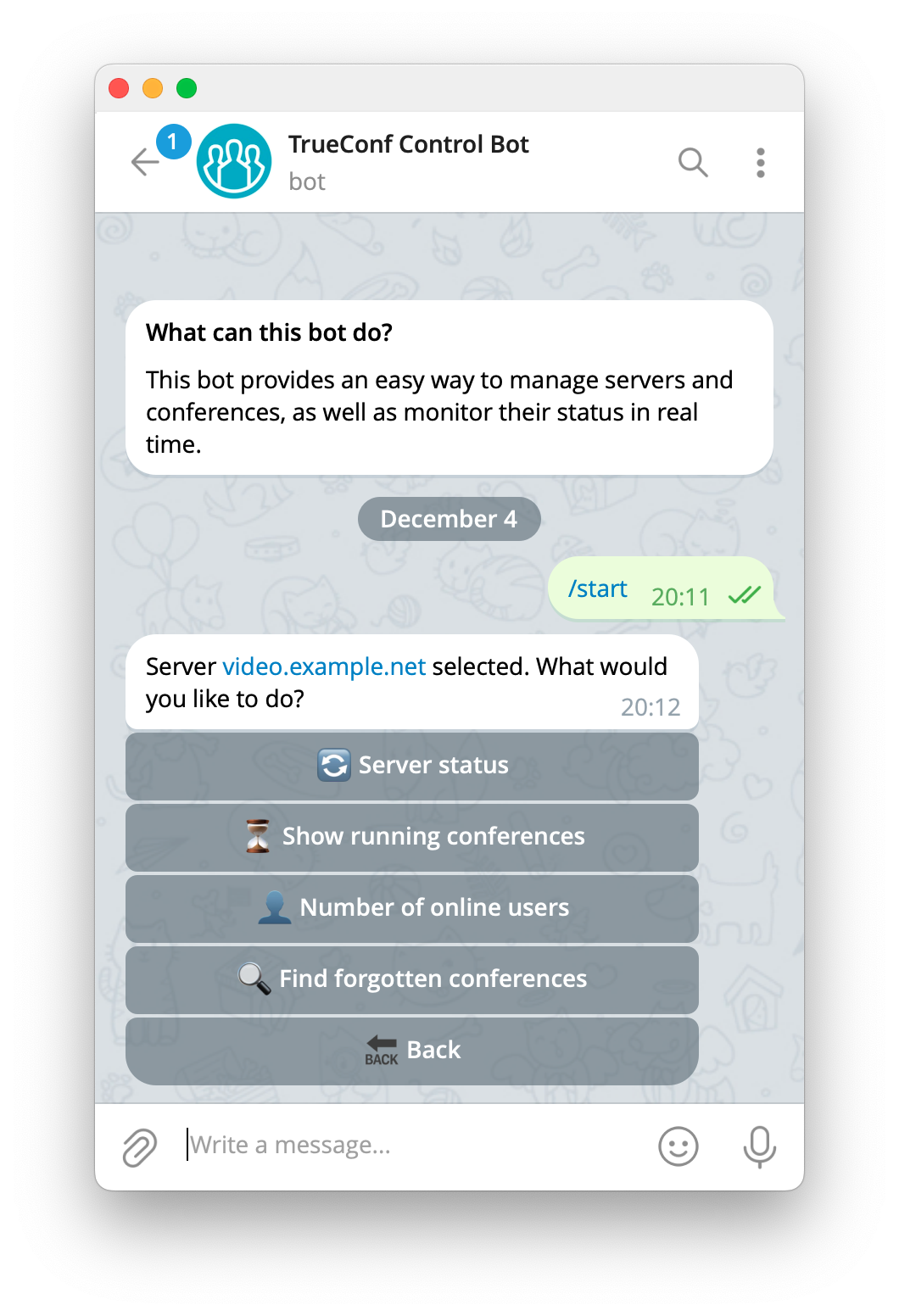 How to Control TrueConf Server Using Its API and Telegram Bot