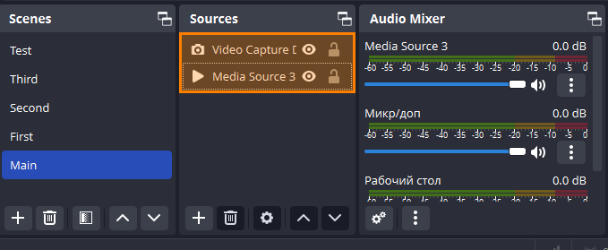 Now, go to your TrueConf app, start your conference, and select the OBS Virtual Camera as your camera. The video within OBS will begin playing, and you can control it (play, stop, seek) directly within the OBS interface.