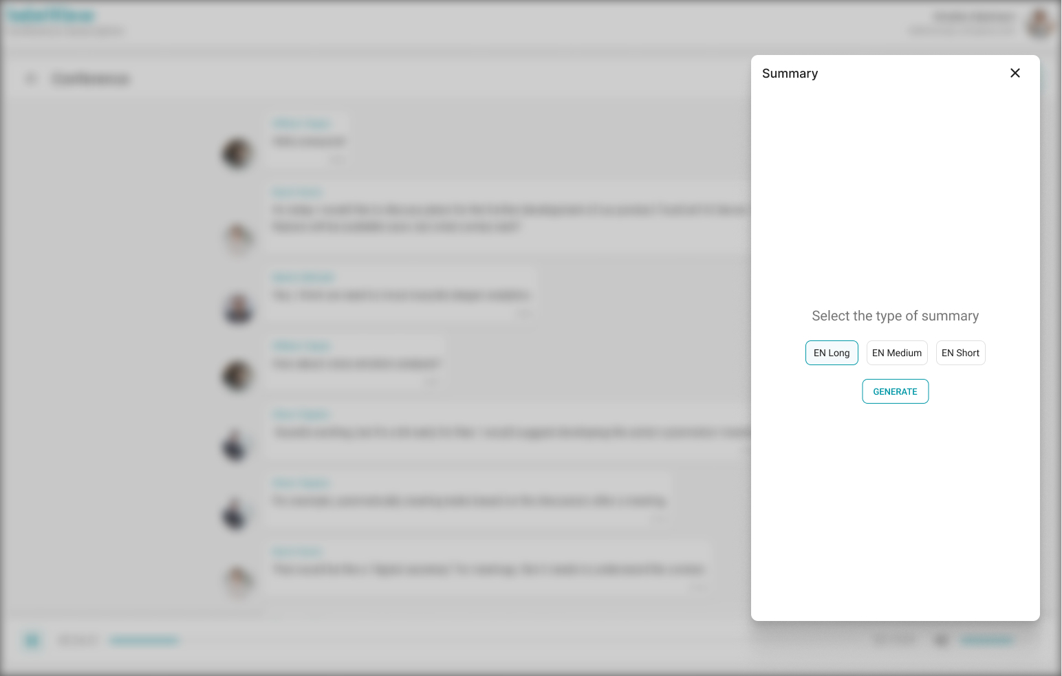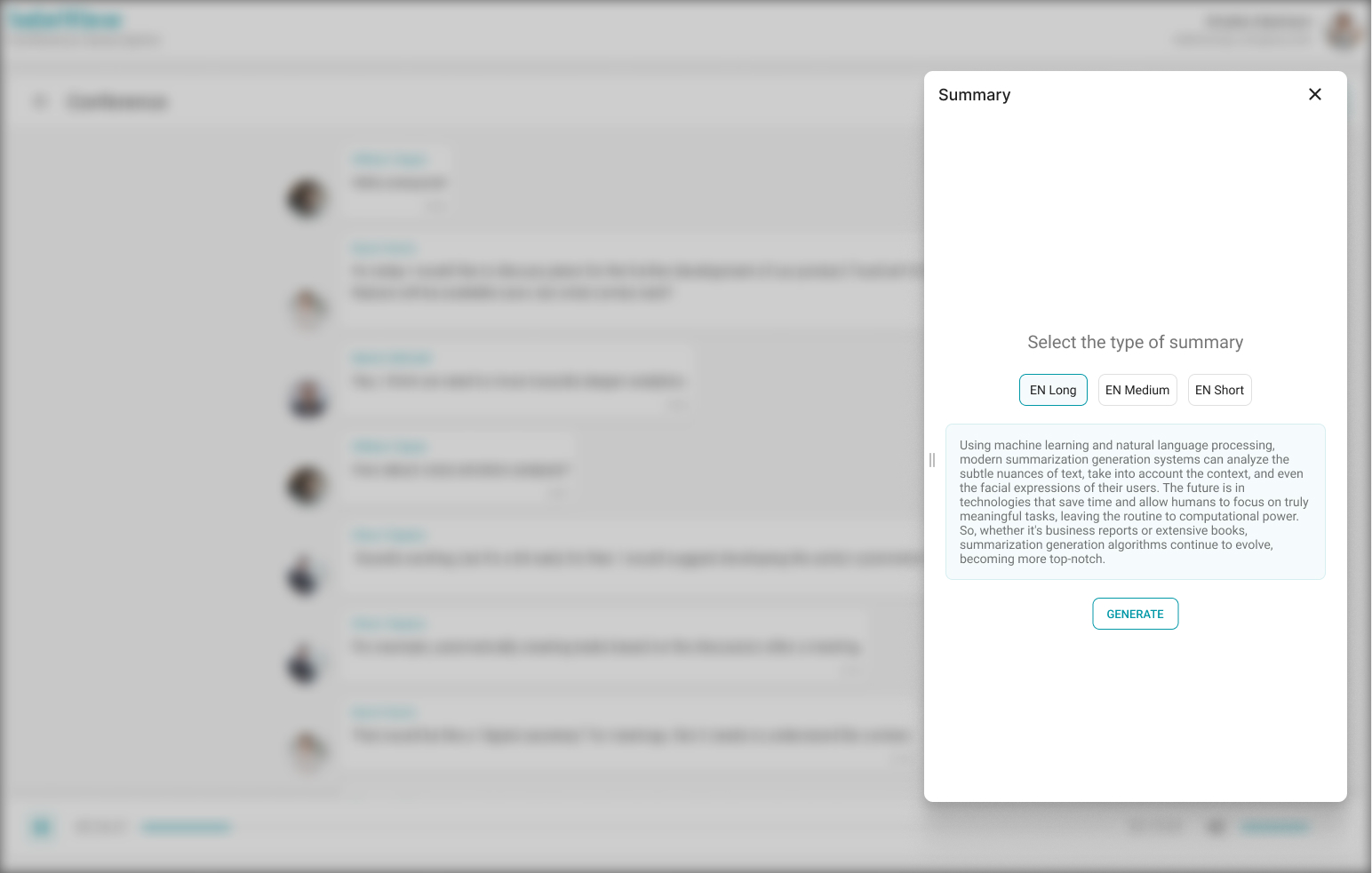 Depending on the meeting type, users can select their preferred summary format. With the help of customizable prompts, the language model analyzes the meeting transcription and extracts key points in the required format. By default, three summarization types are available: detailed points, assigned tasks, and short text.