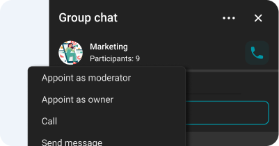 Funções de usuário e controles de administrador – Gerencie permissões, modere conversas e garanta a conformidade com as políticas da empresa.