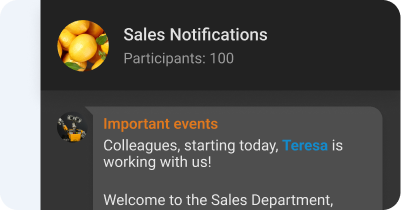 Com a ajuda de um prático catálogo de endereços e navegação por departamentos, você pode entrar em contato com qualquer funcionário da empresa e ver quais colegas estão disponíveis para comunicação.