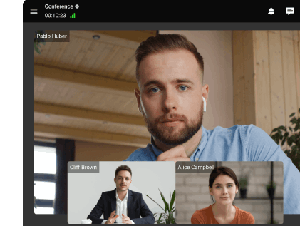 Videoconferência é um sistema de comunicação que permite aos usuários organizar videochamadas pessoais e conferências em grupo. Quando os membros da equipe estão geograficamente dispersos, as tecnologias de telecomunicação permitem a troca interativa em tempo real de dados de áudio e vídeo entre os participantes. A comunicação se torna mais conveniente e eficiente graças a uma ampla gama de recursos, incluindo ferramentas de colaboração, como apresentações, compartilhamento de tela e anotações.