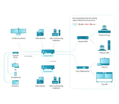 Se você tiver uma grande reunião de negócios ou uma apresentação de produto para um cliente, precisará escolher uma solução confiável. O TrueConf oferece suporte à tecnologia SVC (Scalable Video Coding), que permite que o servidor de videoconferência selecione facilmente a qualidade de imagem de vídeo, a resolução e a taxa de quadros ideais com base na largura de banda disponível do canal de comunicação.